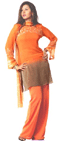 Don't make the mistake of going for all long pieces. Go for contrasting proportions. Mix a longer jacket with a shorter skirt, shorter jacket with pants, etc. Also, if you use a center panel in a dress to create verticals, make sure the panel is less than one third of the width of the garment. More will broaden. (If the panel is a different color; it is most effective if it is the lightest or the brightest.)